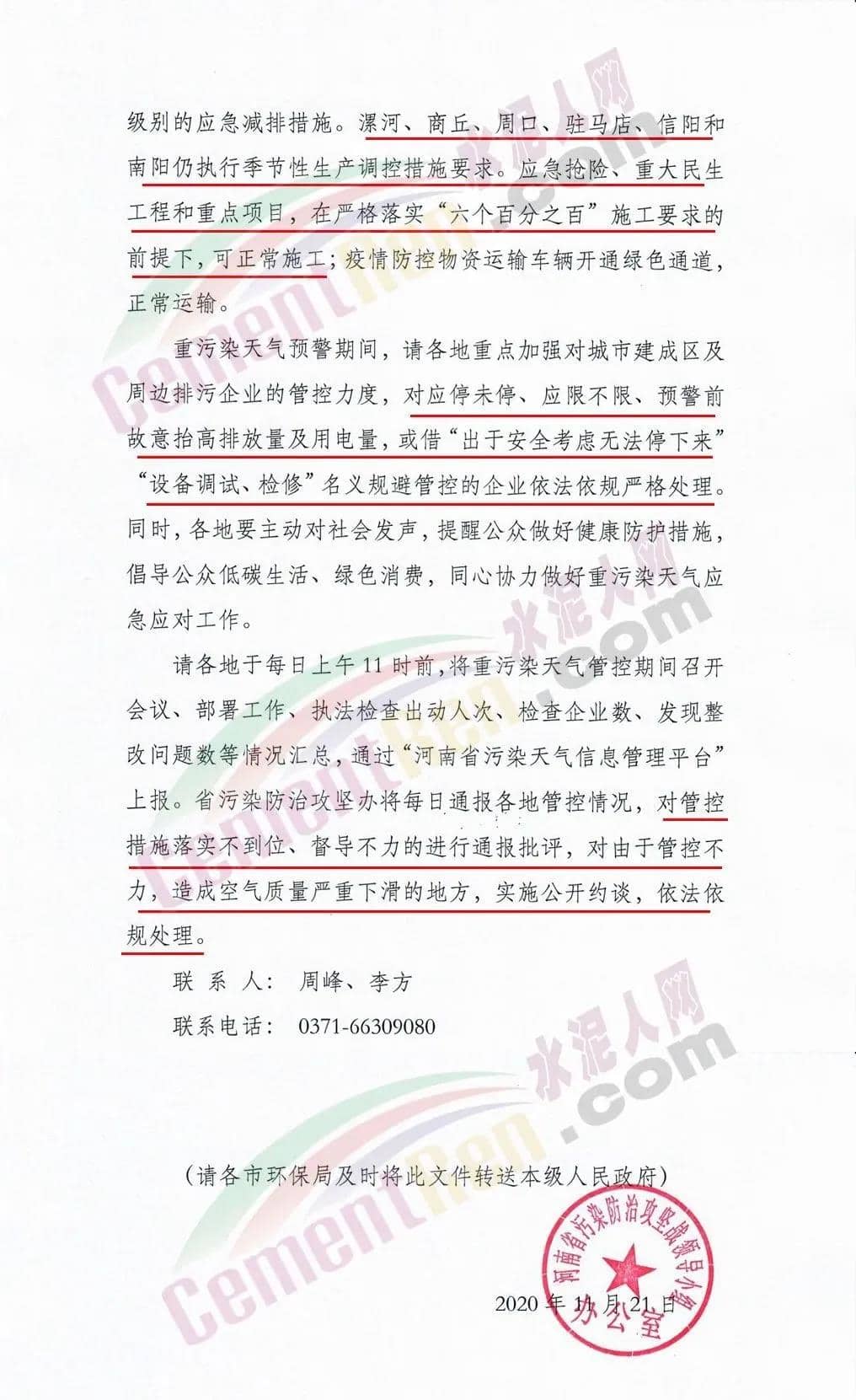 漯河、商丘、周口、駐馬店、信陽和南陽仍執行季節性生產調控措施要求。應急搶險、重大民生工程和重點項目,在嚴格落實“六個百分之百”施工要求的前提下,可正常施工;疫情防控物資運輸車輛開通綠色通道,正常運輸。