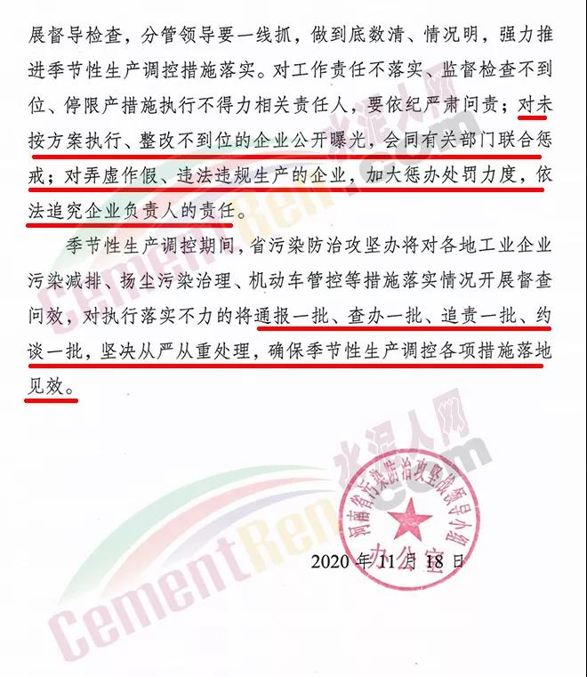 季節(jié)性生產(chǎn)調(diào)控期間,省污染防治攻堅(jiān)辦將對各地工業(yè)企業(yè)污染減排、揚(yáng)塵污染治理、機(jī)動車管控等措施落實(shí)情況開展督查問效,對執(zhí)行落實(shí)不力的將通報(bào)一批、查辦一批、追責(zé)一批、約談一批,堅(jiān)決從嚴(yán)從重處理,確保季節(jié)性生產(chǎn)調(diào)控各項(xiàng)措施落地見效。文件全文如下: