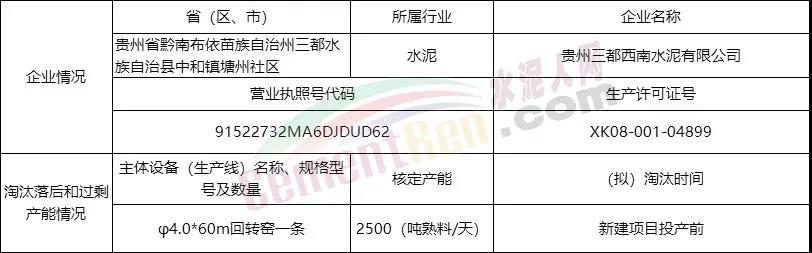日前,貴州省黔南布依族苗族自治州工業和信息化局官網發布《都勻西南水泥有限公司日產4000噸熟料水泥生產線建設項目產能“減量置換”方案的公示》 。公示顯示,都勻西南水泥有限公司將通過退出貴州中誠水泥有限公司和貴州三都西南水泥有限公司兩條2500t/d熟料生產線,新建一條4000t/d新型干法熟料生產線。