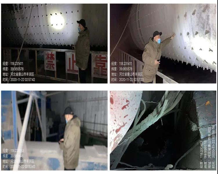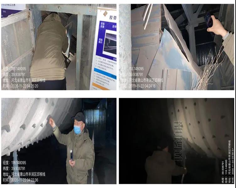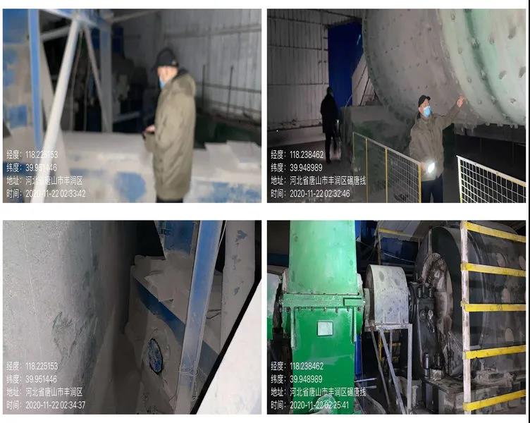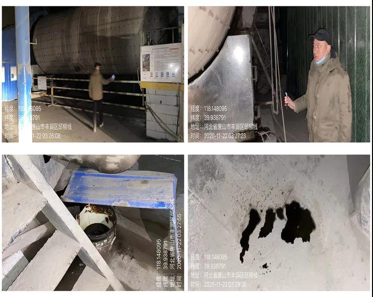 豐潤區生態環境分局吳志文副局長帶隊檢查鴻順建材,該廠未生產,2號球磨機機頭處機油跑冒滴漏上料處廊道未封閉,機頭上料處缺少收塵設施。