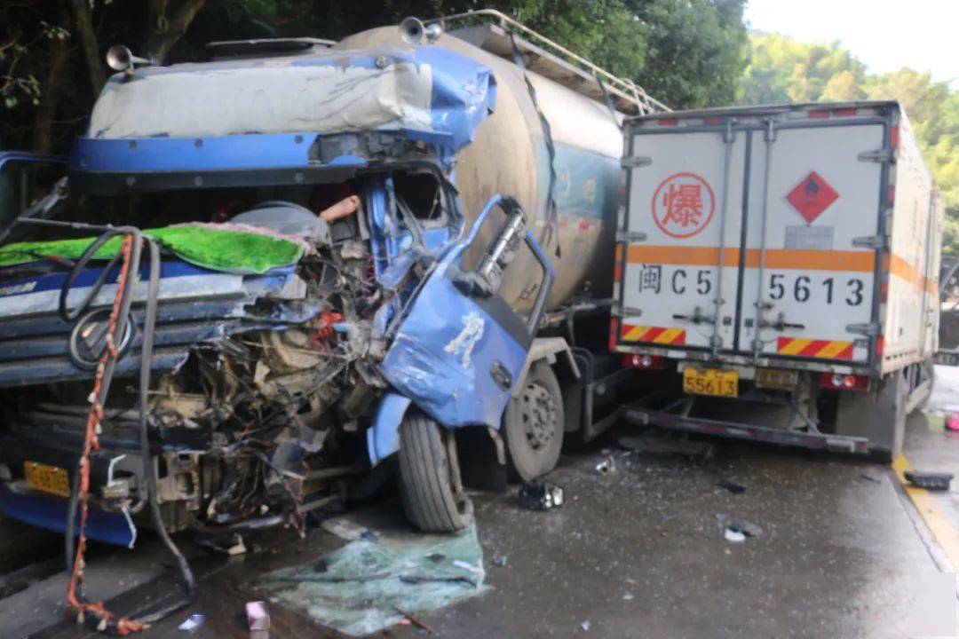 11月20日中午11時33分許,永春縣達鋪鎮猛虎嶺路段,一輛滿載20噸水泥的大罐車和一輛滿載液化氣瓶的貨車迎面相撞,事故導致貨車司機被困駕駛室。接到報警后,永春縣蓬壺消防救援站立即派員趕赴現場。