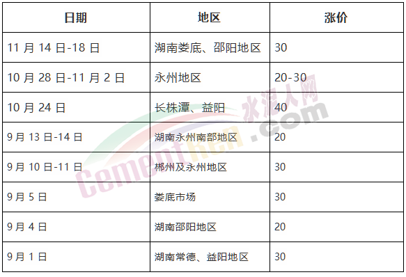 下半年以來,湖南地區分別在11月中下旬,10月下旬及9月份中上旬分三輪上調水泥價格,累計上調達100元/噸。