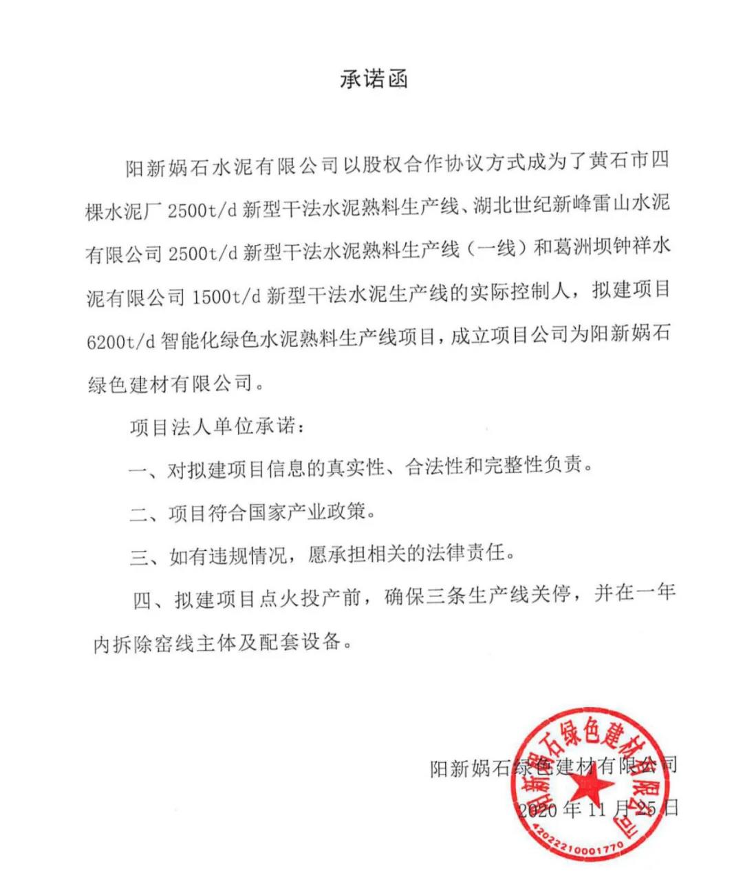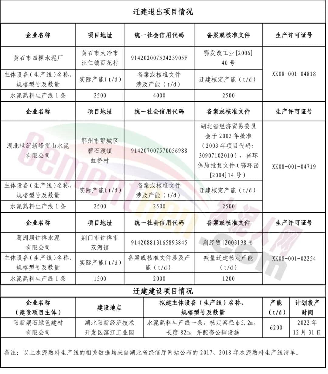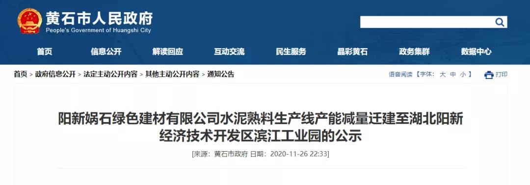 陽新媧石綠色建材有限公司水泥熟料生產(chǎn)線產(chǎn)能減量遷建方案