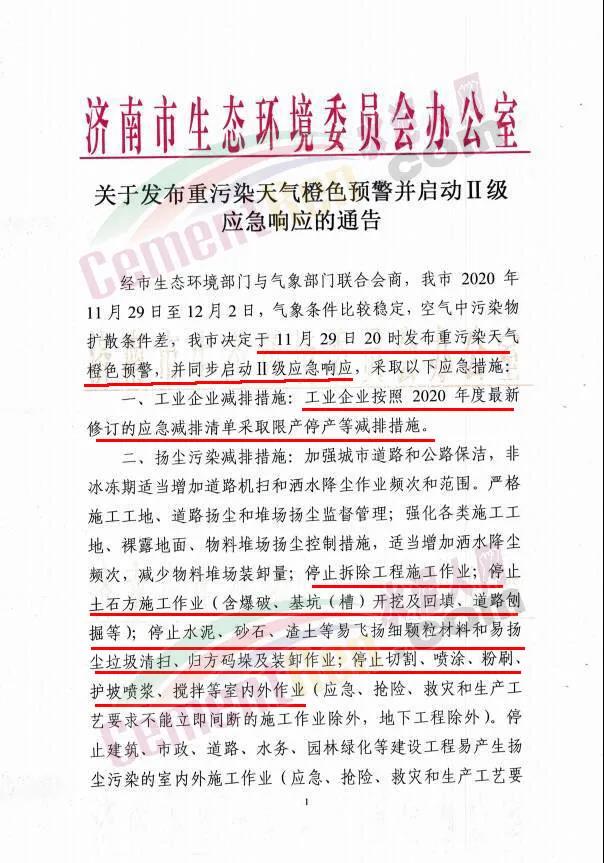 強化各類施工工地、裸露地面、物料堆場揚塵控制措施,適當增加灑水降塵頻次,減少物料堆場裝卸量;停止拆除工程施工作業;停止土石方施工作業(含爆破、基坑(槽)開挖及回填、道路刨掘等);停止水泥、砂石、渣土等易飛揚細顆粒材料和易揚塵垃圾清掃、歸方碼垛及裝卸作業;停止切割、噴涂、粉刷、護坡噴漿、攪拌等室內外作業(應急、搶險、救災和生產工藝要求不能立即間斷的施工作業除外,地下工程除外)。停止建筑、市政、道路、水務、園林綠化等建設工程易產生揚塵污染的室內外施工作業(應急、搶險、救災和生產工藝要求不能立即間斷的施工作業除外,地下工程除外)。礦山、砂石料廠、石材廠、石板廠等應停止露天作業。三、移動源污染減排措施:繞城高速公路以內及各區縣建成區禁行渣土砂石運輸車,未安裝密閉裝置易產生遺撒的運輸車輛應停止上路。礦山(含煤礦)、洗煤廠、繞城高速公路以內及各區縣建成區的物流園區范圍內的企業(民生保障類除外)等涉及大宗原料和產品運輸的單位應停止使用國四及以下重型載貨汽車。繞城高速公路以內及各區縣建成區全面限行達不到國四排放標準的重型(含燃氣)營運貨車、三輪汽車和低速貨車。工業企業廠區和工業園區內停止使用國二及以下非道路移動機械。繞城高速公路以內及各區縣建成區,以柴油為燃料的工程施工機械(包括但不限于裝載機、推土機、壓路機、瀝青攤鋪機、非公路用卡車、挖掘機、開槽機、樁工機械、起重機、發電機等)停止使用,經非道路移動機械環保編碼登記為國三及以上的除外。通知原文如下: