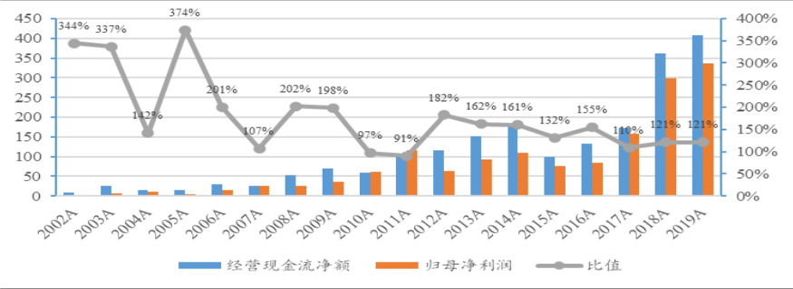 2016 年至今良好的利潤(rùn)和現(xiàn)金流使海螺水泥資產(chǎn)負(fù)債表的極大修復(fù),資產(chǎn)負(fù)債率值下降到 20%的水平;同時(shí)海螺水泥分紅相對(duì)不高,致使凈資產(chǎn)累計(jì),在凈利潤(rùn)難以繼續(xù)大幅增長(zhǎng)的情況下凈資產(chǎn)收益率水平提升有一定壓力。上市以來(lái)海螺水泥礦山資源優(yōu)勢(shì)、銷售成本優(yōu)勢(shì)提供優(yōu)異的現(xiàn)金流,支撐海螺水泥資本開支。可以看到在整個(gè)產(chǎn)能擴(kuò)張階段主要依靠經(jīng)營(yíng)凈現(xiàn)金流支撐,股權(quán)融資和債券融資數(shù)額均較少。海螺水泥對(duì)下游商混、渠道市場(chǎng)議價(jià)能力較強(qiáng)也能在現(xiàn)金流中反應(yīng)。資產(chǎn)負(fù)債率方面,上市之初產(chǎn)能快速擴(kuò)張致使資產(chǎn)負(fù)債率快速上升,2007-2008 年的股權(quán)融資 156 億元使資產(chǎn)負(fù)債率從 60%以上降至 40%,2011—2013 年發(fā)行企業(yè)債并購(gòu)產(chǎn)能使資產(chǎn)負(fù)債率有所上升,而后隨著資本開支減少、利潤(rùn)增長(zhǎng),負(fù)債率快速下降 20%,大幅優(yōu)于行業(yè)其他公司和絕大部分其他周期性行業(yè)龍頭公司。海螺水泥良好資產(chǎn)負(fù)債表和儲(chǔ)備的大量現(xiàn)金賦予企業(yè)較強(qiáng)風(fēng)險(xiǎn)抵御能力,并能在新增產(chǎn)能受禁的情況下借機(jī)并購(gòu)?fù)卣巩a(chǎn)能、進(jìn)入其他行業(yè)。根據(jù)我們預(yù)測(cè),到 2020 年底海螺水泥現(xiàn)金和理財(cái)產(chǎn)品總額將達(dá)到 900 億元。近幾年現(xiàn)金凈流額如圖3所示。