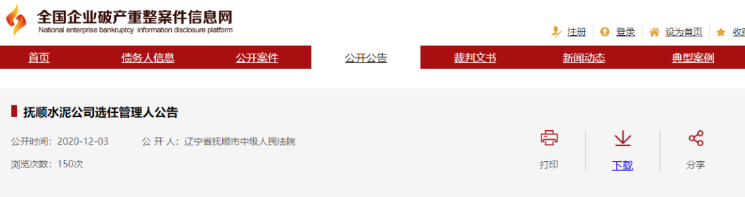 一、遼寧撫順水泥股份有限公司存產清算競爭方式指定管理人