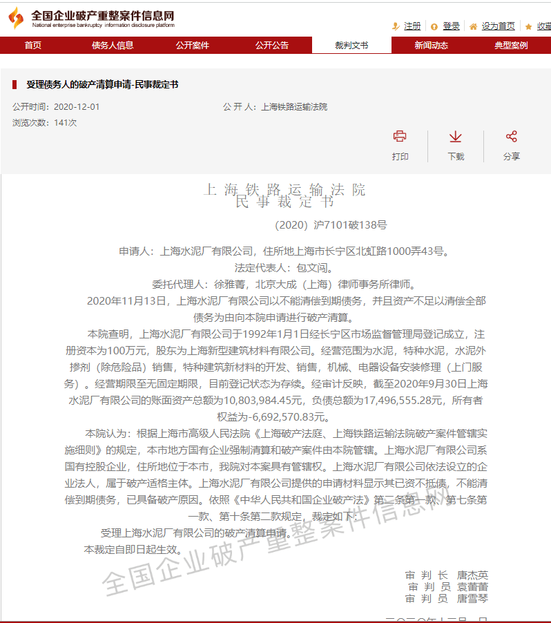 此前,水泥人網曾報道多起水泥企業破產清算的案例,可見類似的情形并不少見。全國企業破產重整案件信息網數據顯示,多家水泥企業被指定了破產清算管理人。