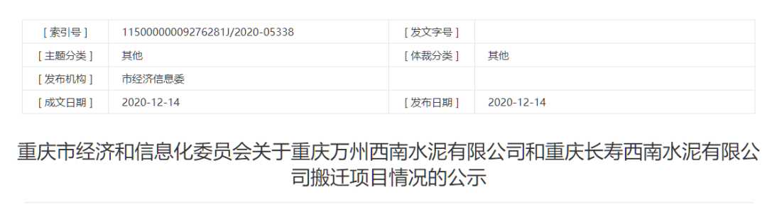重慶萬州西南水泥有限公司和重慶長壽西南水泥有限公司搬遷項目