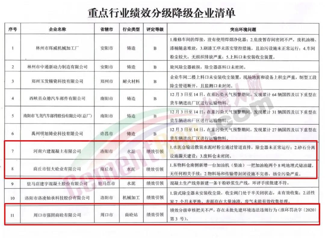 12月17日,省污染防治攻堅(jiān)辦印發(fā)通報,對部分重點(diǎn)行業(yè)績效分級企業(yè)實(shí)施降級處理。通報指出,11月份以來,省秋冬季大氣污染防治攻堅(jiān)暗訪檢查發(fā)現(xiàn),6家績效分級B級企業(yè)和5家績效引領(lǐng)企業(yè),存在治污設(shè)施不正常運(yùn)行、無組織排放嚴(yán)重、管控措施落實(shí)不力及在重污染天氣預(yù)警期間違規(guī)使用國四及以下車輛等環(huán)境突出問題。經(jīng)省污染防治攻堅(jiān)戰(zhàn)領(lǐng)導(dǎo)小組辦公室研究決定,取消上述6家績效分級B級企業(yè)資格,降為C級企業(yè);取消上述5家績效引領(lǐng)企業(yè)資格。
