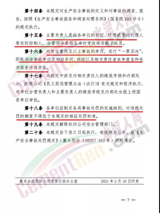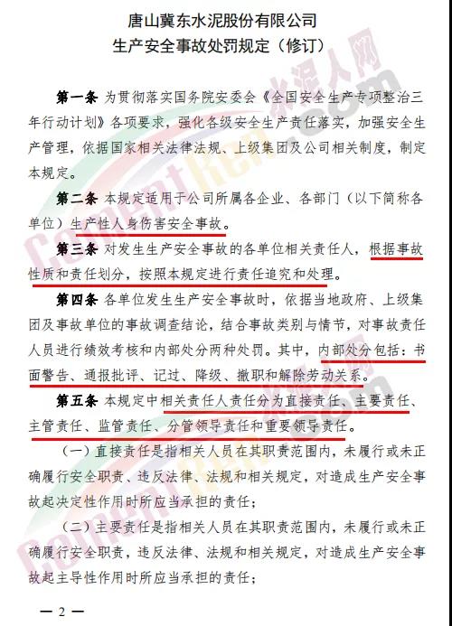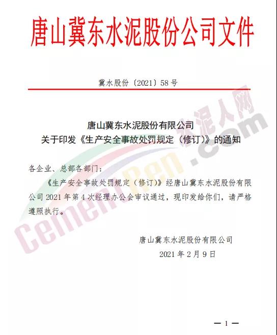 唐山冀東水泥股份有限公司《生產安全事故處罰規定》全文如下: