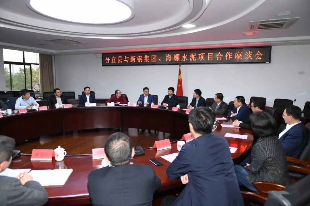 夏文勇對新年伊始縣四套班子領導一行來到公司共同謀劃新的一年合作事宜、近年來分宜縣委縣政府對新鋼集團的關心和支持、對分宜支持新鋼發展所做的工作表示感謝。他說,近年來,在供給側結構性改革大背景下,新鋼集團牢牢把握歷史發展機遇,通過深化改革、轉型升級、創新驅動、綠色發展,從鋼鐵主業到非鋼產業,從資源開發到綠色建筑,從金融貿易到工程技術,不斷取得新突破,強勁的發展勢頭離不開地方政府的大力支持,希望通過雙方的共同努力,進一步拓展合作的廣度和深度,共同推動地方經濟高質量發展。同時,希望與分宜海螺水泥公司就資源綜合開發利用開展緊密合作,發揮各自的優勢,把資源利用到最充分,創造出最大價值。