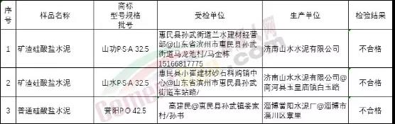 山東省濱州市市場監督管理局公布2020年第2批產品質量市監督抽查結果顯示,有3家企業的3批次水泥抽查不合格。其中包括一個批次PO42.5水泥。