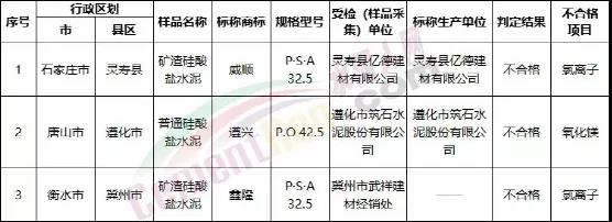 河北省市場監督管理局公布的產品質量監督抽查結果中水泥檢出不合格樣品3批次,其中包括1個批次PO42.5水泥產品。不合格項目為氧化鎂。
