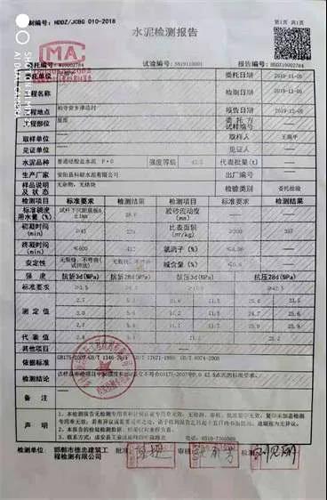 令人想不到的是,10月28日拆模板時(shí)竟然發(fā)現(xiàn)房頂?shù)乃噙€沒(méi)有完全凝固。我當(dāng)即就與柏寺?tīng)I(yíng)鄉(xiāng)的安運(yùn)聯(lián)系。10月29日下午,安運(yùn)與鄭家莊村的經(jīng)銷商高志杰一同到我家,讓我用小錘敲擊房頂邊,發(fā)現(xiàn)水泥一塊一塊的散落。經(jīng)銷商高志杰用手機(jī)錄了視頻,并且還拉走一袋剩余的水泥說(shuō)要送到廠家檢驗(yàn)。誰(shuí)知,至今兩個(gè)多月過(guò)去了,一直沒(méi)有給我任何說(shuō)法。期間,我只好把剩余的水泥送到“邯鄲市德忠建筑工程檢測(cè)有限公司”進(jìn)行檢測(cè)。檢測(cè)結(jié)果:此水泥的抗折、抗壓各項(xiàng)指標(biāo)幾乎全部不符合標(biāo)準(zhǔn)。(視頻、照片、檢測(cè)報(bào)告等相關(guān)證據(jù)附后)盼望上級(jí)領(lǐng)導(dǎo)能夠體貼民情,在百忙中安排執(zhí)法人員查處偽劣商品。替平民百姓討一個(gè)公道!”