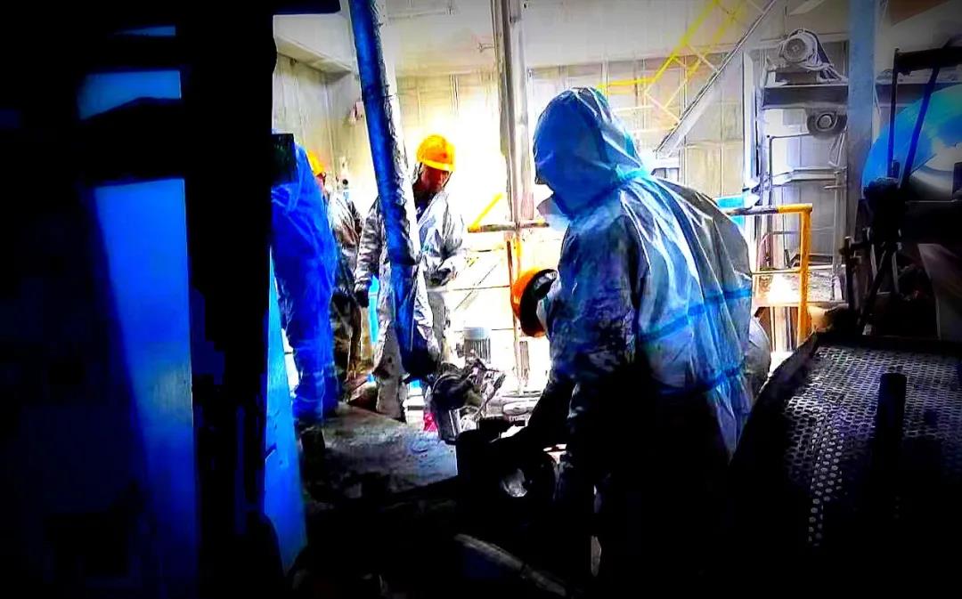 搶修過(guò)程中,眾城分廠三個(gè)搶修小分隊(duì)同時(shí)開(kāi)工,齊心奮戰(zhàn)。為了加快檢修進(jìn)度,提升檢修質(zhì)量,該分廠安排人員將午餐、晚餐送至施工現(xiàn)場(chǎng),為檢修工作提供了保障。同時(shí),公司領(lǐng)導(dǎo)班子帶領(lǐng)紀(jì)委工作人員到現(xiàn)場(chǎng)監(jiān)督檢查,重點(diǎn)檢查落實(shí)急難危重任務(wù)時(shí)干部跟班帶班情況,保全部、生產(chǎn)部、眾城分廠領(lǐng)導(dǎo)同時(shí)在現(xiàn)場(chǎng)對(duì)檢修進(jìn)行指揮、調(diào)度。