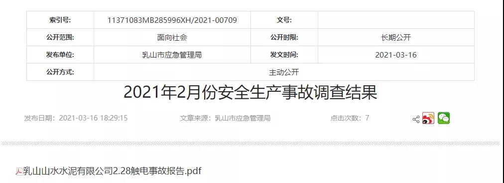 經(jīng)調(diào)查認(rèn)定,乳山山水水泥有限公司“2.28”一般觸電事故是一起生產(chǎn)安全責(zé)任事故。