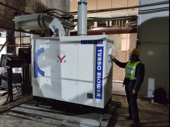 對裝備改造、裝備團隊的選擇上精益求精,滕州中聯水泥在經過多次的市場調研,重重篩選之后,對原有的鼓風機進行了升級改良,將原有的羅茨風機升級改造為濰坊富源增壓器有限公司(以下簡稱“濰坊富源”)研發生產的高效節能的空氣懸浮風機。該風機功率147kw,轉速27000rpm。