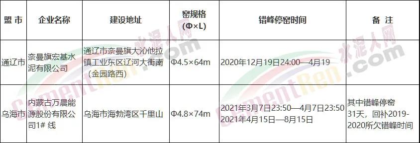 日前,內蒙古工信廳冶金建材工業處公布了內蒙古自治區2020-2021年水泥熟料生產線錯峰停窯限產置換企業清單(第二批),并提到對不嚴格執行錯峰生產或弄虛作假的企業,按照文件要求將被推送至企業信用信息公示系統(內蒙古)協同監管平臺將其列入黑名單或嚴重違法失信企業名單,并對違法違規企業及其主要負責人實施聯合懲戒。