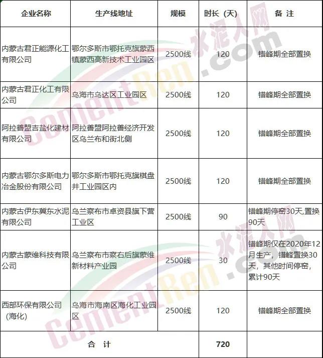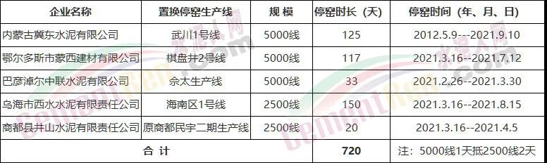 非電石渣水泥熟料企業“錯峰置換”停窯清單