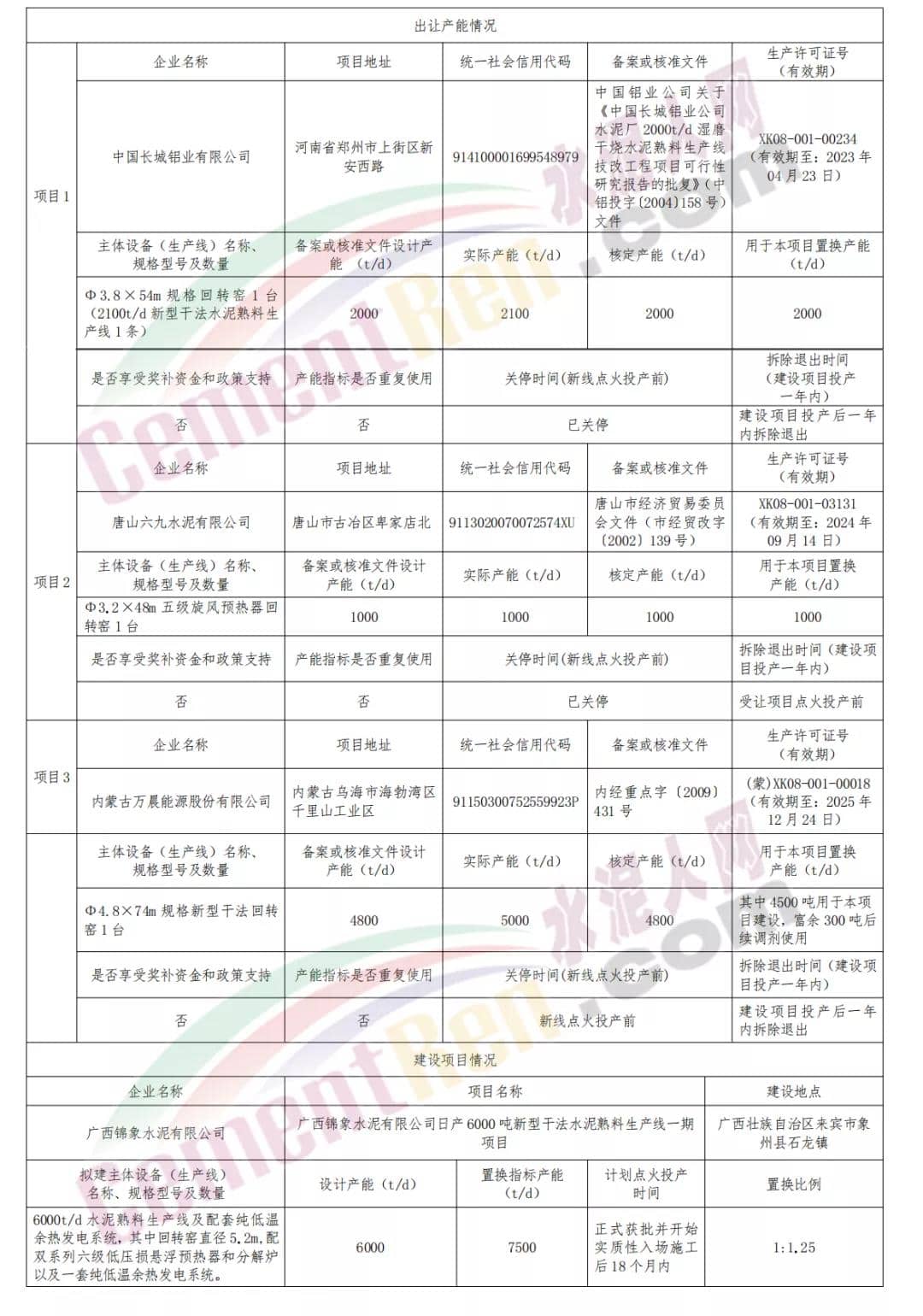 對廣西錦象水泥有限公司日產6000噸新型干法水泥熟料生產線一期項目產能置換方案(詳見附件1)的合法性、合規性,置換指標的真實性情況聽取各方面的意見和建議。