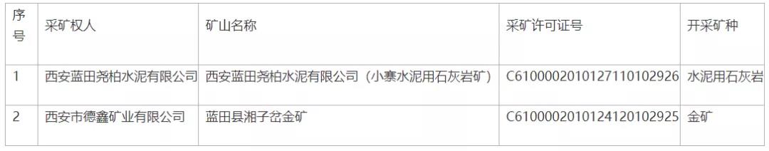 按照《陜西省秦嶺生態(tài)環(huán)境保護(hù)條例》《西安市秦嶺生態(tài)環(huán)境保護(hù)條例》有關(guān)規(guī)定,根據(jù)《自然資源部辦公廳關(guān)于政策性關(guān)閉礦山采礦許可證注銷有關(guān)工作的函》(自然資辦函〔2019〕1574號) 和《中共西安市委關(guān)于全面加強(qiáng)秦嶺生態(tài)環(huán)境保護(hù)工作的決定》(市發(fā)〔2019〕8號)等文件要求,經(jīng)縣政府研究,決定對西安藍(lán)田堯柏水泥有限公司小寨水泥用石灰?guī)r礦、西安市德鑫礦業(yè)有限公司湘子岔金礦依法予以關(guān)閉。現(xiàn)就關(guān)閉礦山信息通告如下: