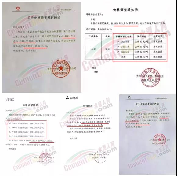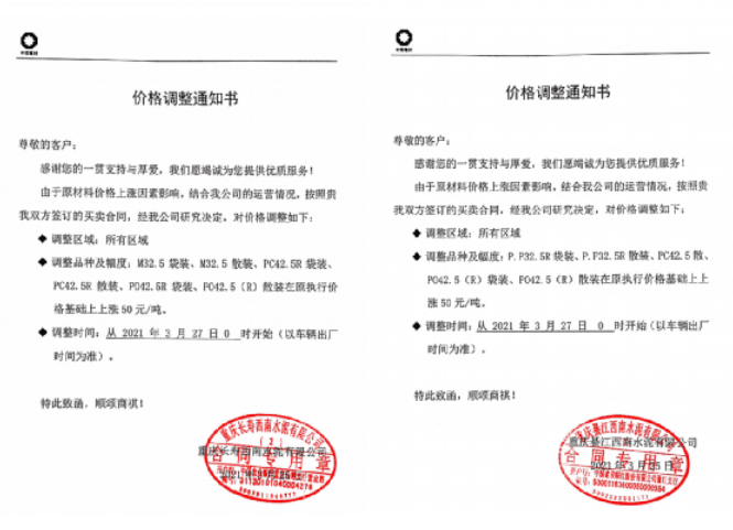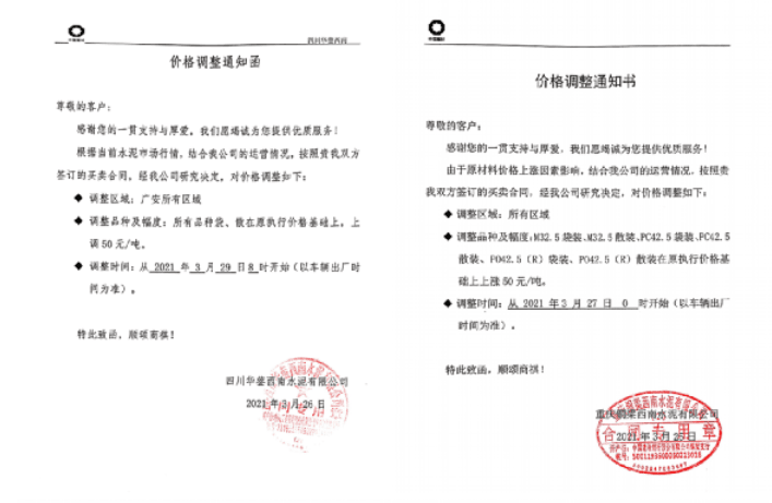 同期,廣西壯族自治區華潤、臺泥、路寶水泥等品牌企業通知自25日起各品種水泥價格上調20元/噸。