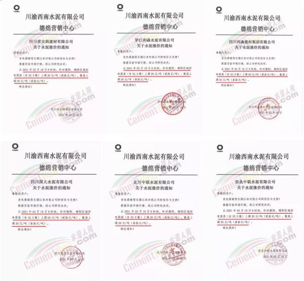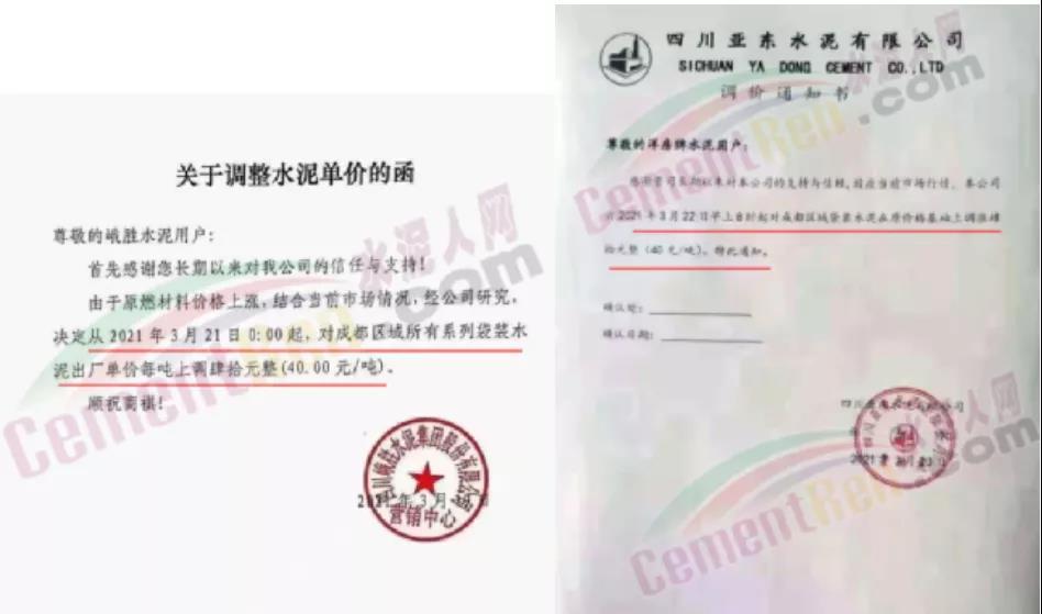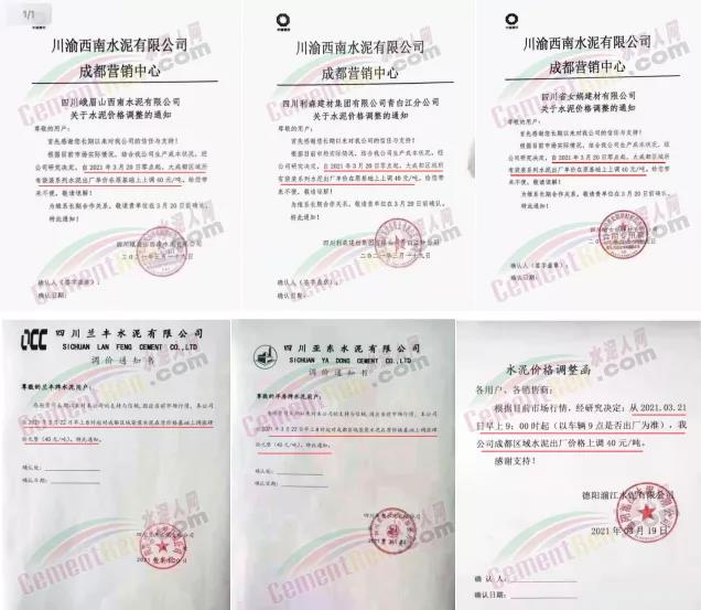3月中旬以來四川區域西南水泥、亞東水泥、峨勝水泥等多家主要品牌企業陸續通知上調水泥價格30-40元/噸。