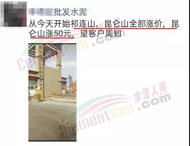 22日青海鹽湖海納化工有限公司青海水泥股份有限公司通知自3月26日零時起,對“昆侖山”牌水泥各品種掛牌價格進行調整,調整后PO42.5散裝水泥甘河水泥報價420元/噸,大通水泥報價430元/噸。