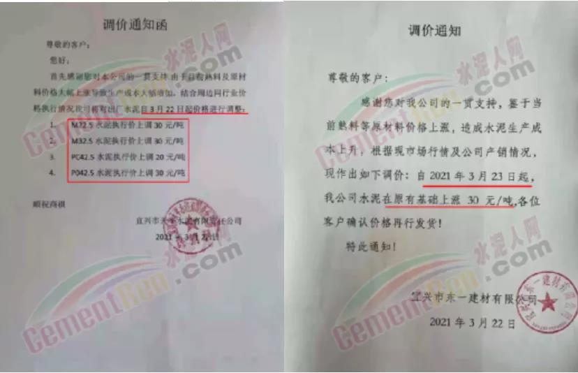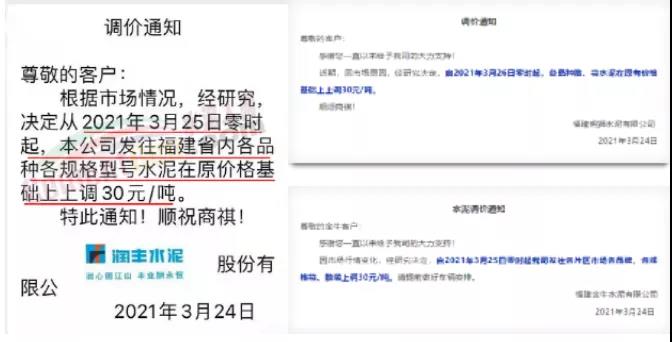 水泥調價通知