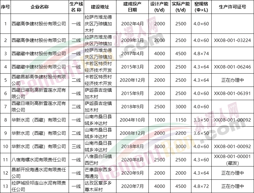 3月30日,西藏自治區經濟和信息化廳發布《西藏自治區經濟和信息化廳關于公開全區水泥熟料生產線清單的公告》稱,根據相關文件要求,西藏自治區經信廳組織相關市經信局和水泥生產企業更新了全區水泥熟料生產線清單,并將匯總后的清單予以公告。 西藏自治區水泥熟料生產線清單顯示,包括西藏高爭、高新雪蓮、華新西藏、八宿海螺、昌都開投海通以及拉薩城投祁連山水泥在內的13條熟料生產線,實際年產能達千萬噸以上。 西藏自治區水泥熟料生產線清單 填報處室: 原材料工業處 發布時間:2021年3月25日