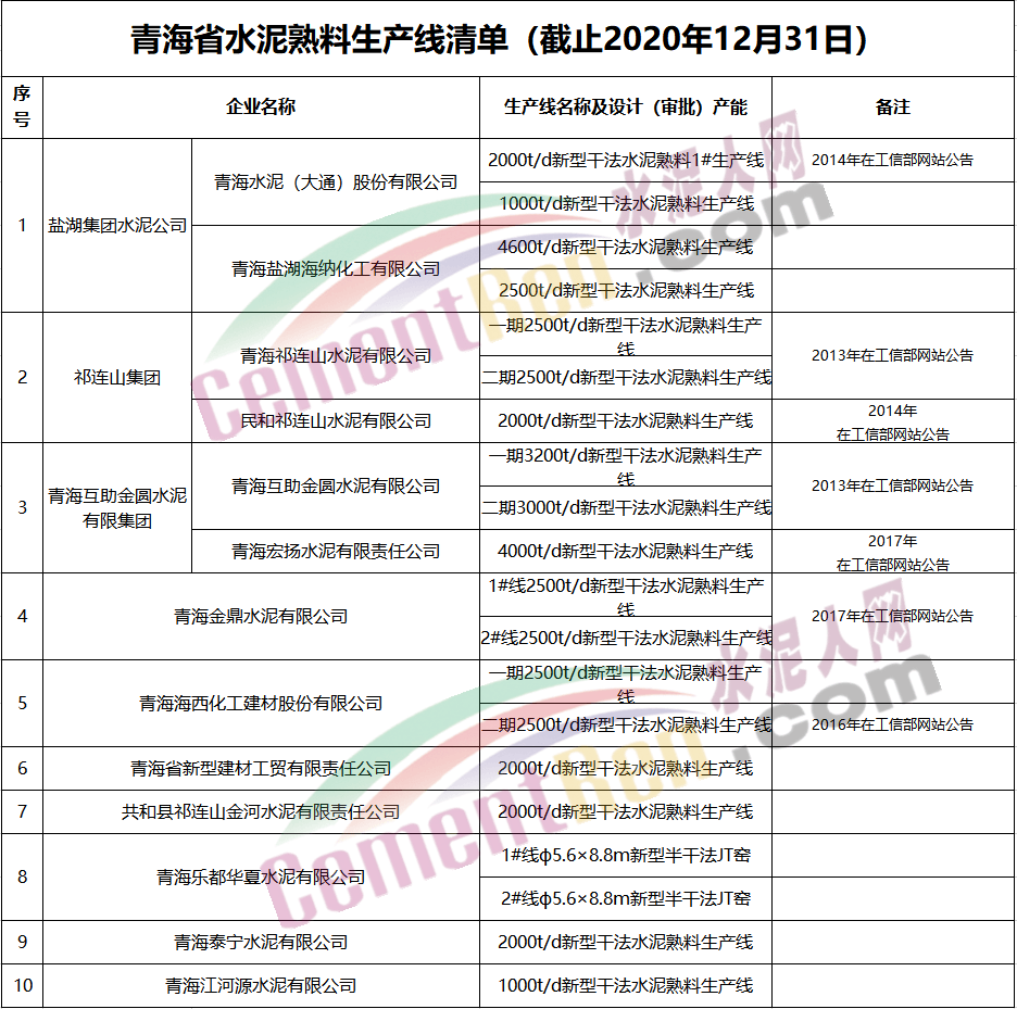 3月31日青海省工信廳發布《關于青海省水泥平板玻璃生產線清單的公示》,公示清單中包括13家水泥公司,年產能總計共1179萬噸/年。