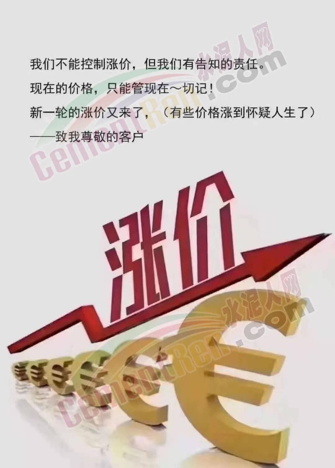 有水泥經銷商發致客戶稱:“我們不能控制漲價,但我們有告知的責任。現在的價格,只能管現在~切記!新一輪漲價又來了,有些價格漲到開始懷疑人生了!”