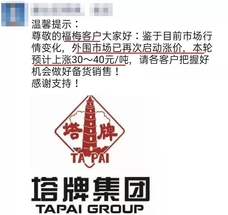 塔牌水泥經銷商通知,鑒于目前市場行情變化 ,外圍市場已經再次啟動漲價,本輪預計上漲30~40元/噸。