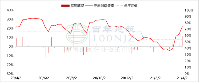 上周全國水泥熟料庫存由降轉升,全國重點城市P.O42.5散裝水泥均價452元/噸,較前一周持平,全國水泥窯線運轉率高位運行,產能得到釋放,供應增加,前期水泥價格大幅上漲后,上周行情震蕩運行,落實漲價為主。預計下周市場行情偏強運行,東北部分水泥企業停窯,熟料南下時間延后,東南沿海部分區域熟料緊張,預計水泥價格持續上漲;北方地區市場需求逐步恢復,水泥行情穩中偏強。