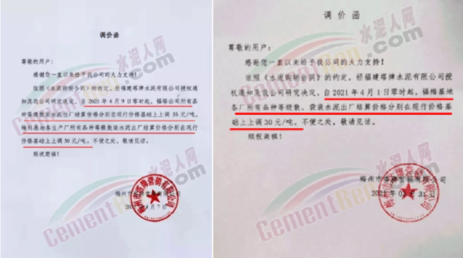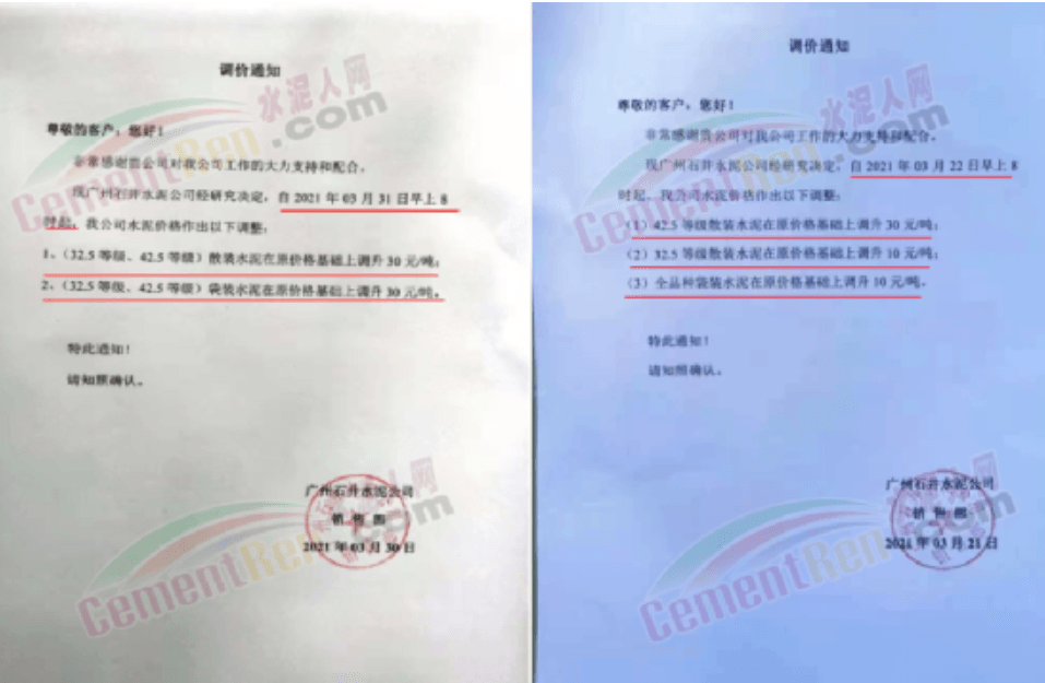 近幾日,安徽合肥巢湖地區、遼寧、河南、江蘇、四川、河北、陜西、安徽等多區域通知上調水泥價格,單次上調20-50元/噸。