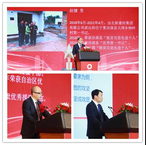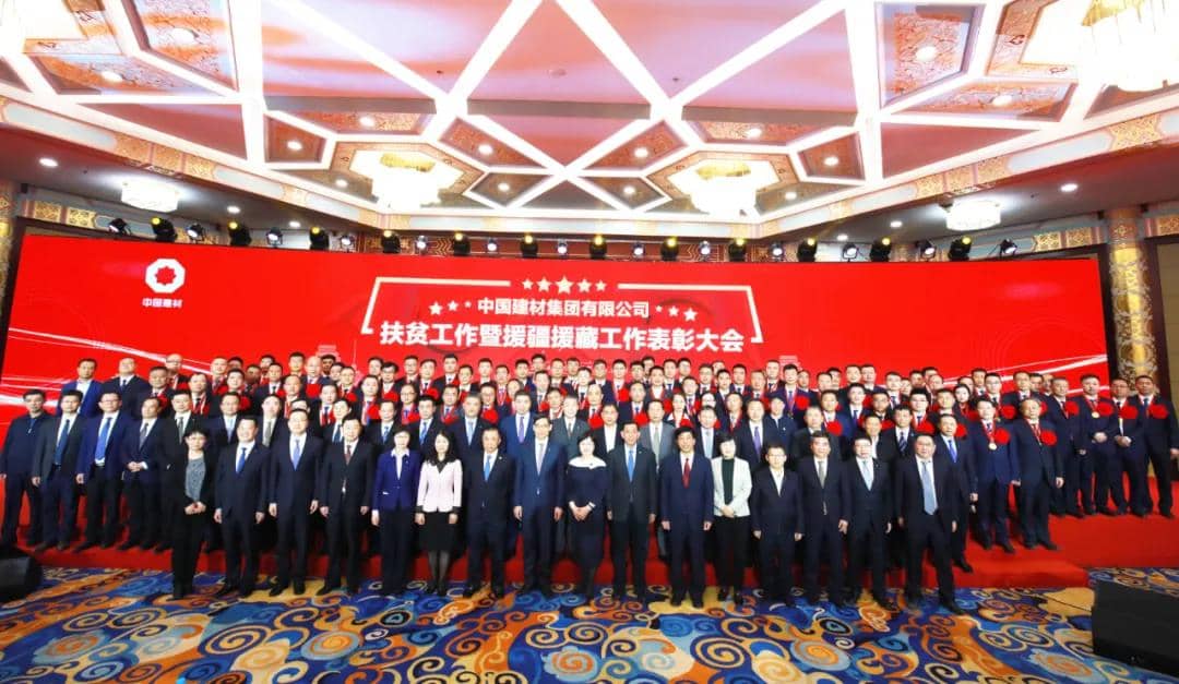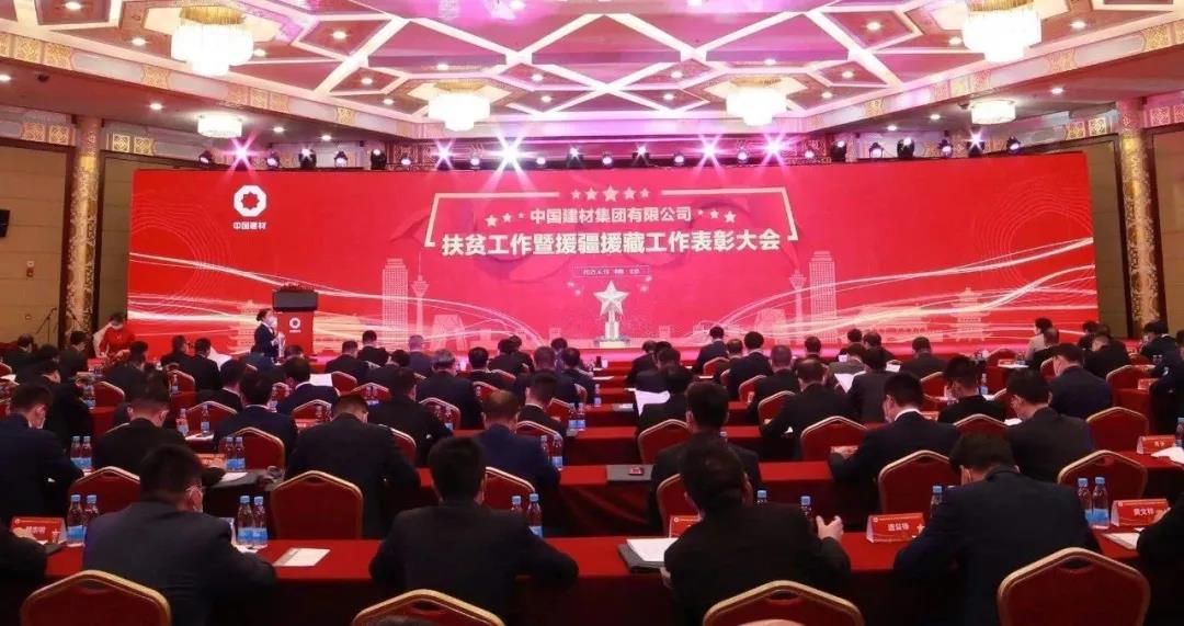 曹江林宣讀表彰決定,黨的十八大以來,集全集團之力,盡銳出戰、合力攻堅。2020年我國脫貧攻堅戰取得了全面勝利,區域性整體貧困得到解決,完成了消除絕對貧困的艱巨任務。集團定點幫扶的五個縣區已脫貧出列,援疆援藏工作也取得了階段性成果。為表彰在脫貧攻堅及援疆援藏工作中涌現出的先進個人和先進集體,充分展現脫貧攻堅成效成果,經集團黨委研究決定:授予中國建材股份有限公司等19家成員企業“扶貧工作先進單位”稱號,授予俞國漢等18名同志“扶貧工作先進個人”稱號,授予高延森等9名同志“援疆援藏工作先進個人”稱號,授予孫成國等64名同志“扶貧優秀工作者”稱號。