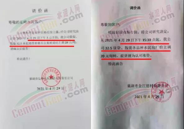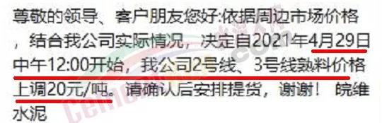 山西五星水泥有限公司發通知稱,近期由于原材料價格的持續上漲和為響應國家環保政策導致錯峰限產等因素,造成水泥生產成本上升,為維持企業正常生產經營,保障下游客戶水泥供應,根據市場情況變化,公司決定自2021年5月1日8時起,將水泥價格上調20元/噸。