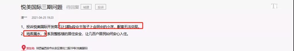 4月29日下午,西安市長安區政府在領導留言板上作出答復,內容為“網民朋友:您好!您反映的問題經調查,針對地庫漏水檢測維修問題,由建設單位聯系檢測單位進行檢測,根據檢測結果確定整改方案,進行維修。針對15號樓門廊地面塌陷問題,由建設單位聯系原沉降觀測單位對15號樓體進行變形監測,根據監測結果由建設單位出具維修方案進行維修,維修合格后交付使用。本期交付悅美國際三期的15#、17#、21#樓自4月24日起已停止交房。長安區住建局將持續跟進問題處置,確保各項反映問題得到解決。”