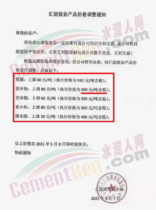 煤炭產(chǎn)地漲價依舊持續(xù),煤礦頻繁漲價,拉煤的速度遠遠趕不上煤礦調(diào)價的速度。匯能煤業(yè)漲價函一經(jīng)發(fā)出迅速火爆朋友圈,優(yōu)中塊煤報價高達990元/噸,產(chǎn)地煤價即將沖破千元大關(guān)!