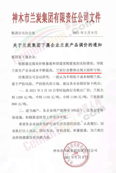 神木市蘭炭集團有限責任公司通知,由于煤炭價格暴漲和原煤采購緊張的實際情況,導(dǎo)致蘭炭生產(chǎn)企業(yè)成本不斷提高,蘭炭行業(yè)出現(xiàn)大面積虧損。