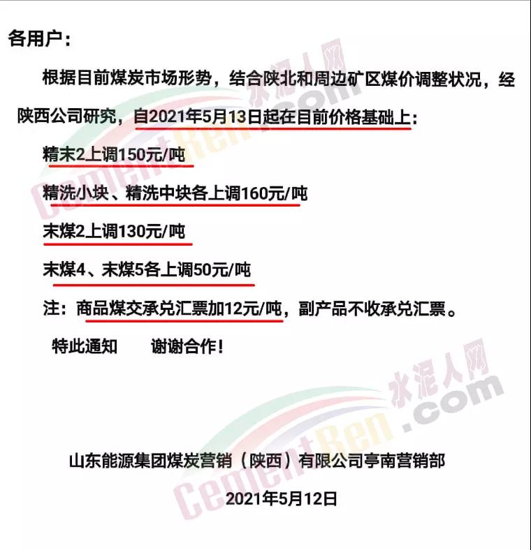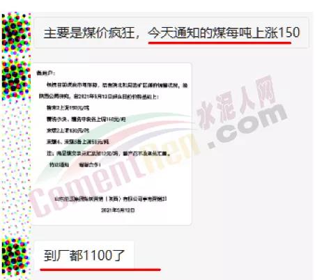 河南某水泥企業(yè)采購人員對水泥人網(wǎng)表示,12日收到通知,煤價再漲150元/噸,到廠價都1100元/噸了。