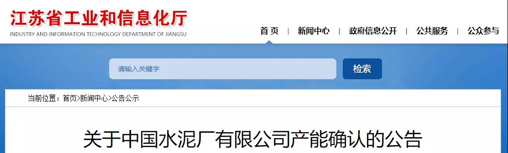 日前,江蘇省工信廳發(fā)布《關于海螺水泥有限公司產(chǎn)能確認的公告》稱,根據(jù)相關文件要求,現(xiàn)將中國水泥廠有限公司置換給安徽省和廣西壯族自治區(qū)的水泥熟料產(chǎn)能予以公告,具體公告如下: