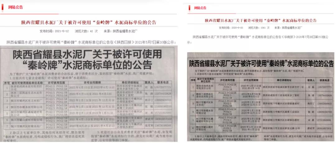 日前,陜西省耀縣水泥廠發布《關于被許可使用"秦嶺牌"水泥商標單位的公告》稱:為了維護廣大“秦嶺牌”水泥消費者的合法權益,便于消費者區分、鑒別假冒“秦嶺牌”水泥。工廠鄭重聲明:目前共有七家企業被陜西省耀縣水泥廠許可使用“秦嶺牌”水泥商標。除已授權的七家單位外,其他任何未經許可,擅自使用“秦嶺牌”水泥商標者,均構成侵權行為,企業將依法追究其侵權責任。
