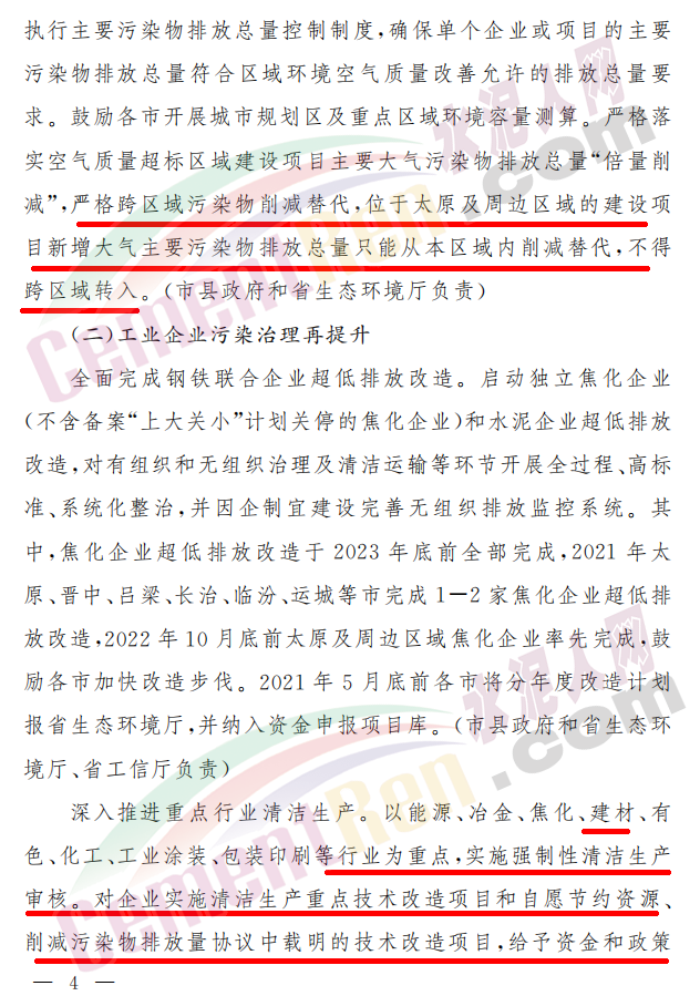 全面完成鋼鐵聯合企業超低排放改造。啟動獨立焦化企業(不含備案“上大關小”計劃關停的焦化企業)和水泥企業超低排放改造,對有組織和無組織治理及清潔運輸等環節開展全過程、高標準、系統化整治,并因企制宜建設完善無組織排放監控系統。2021年5月底前各市將分年度改造計劃報省生態環境廳,并納入資金申報項目庫。