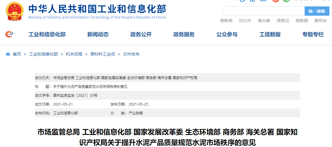 日前,國家市場監(jiān)管總局、工業(yè)和信息化部、國家發(fā)展改革委、生態(tài)環(huán)境部、商務部、海關總署和國家知識產權局聯(lián)合印發(fā)了《關于提升水泥產品質量規(guī)范水泥市場秩序的意見》(下簡稱“《意見》”)。