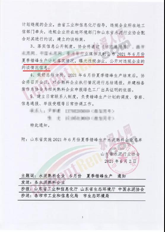 2、執行違規約談制度。對落實2021年6月份夏季錯峰生產計劃違規的企業,由省工業和信息化廳指導,違規企業所在地工信部門牽頭,違規企業所在地環境部門和山東省水泥行業協會配合對其進行約談,建立約談檔案。