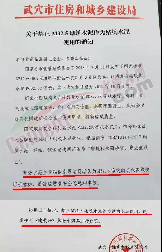 住建部門通知,禁止 M32.5 砌筑水泥作為結構水泥使用