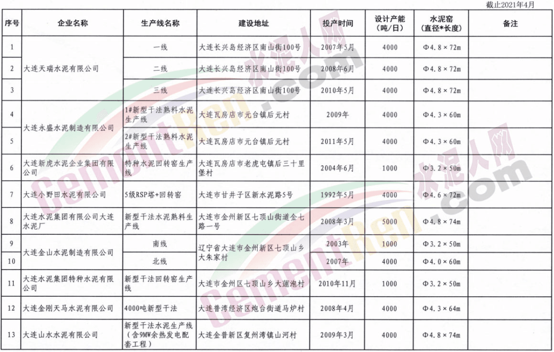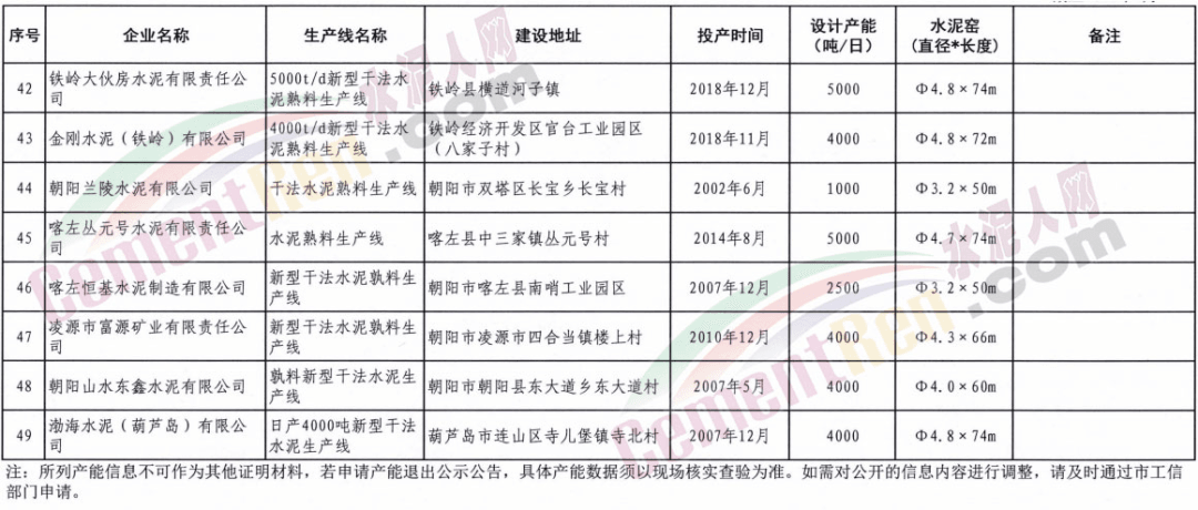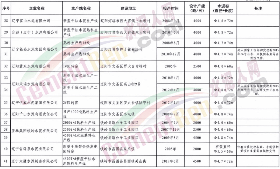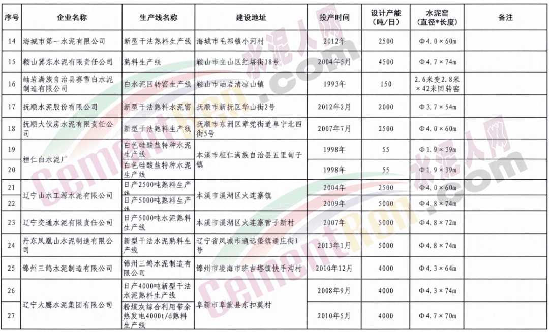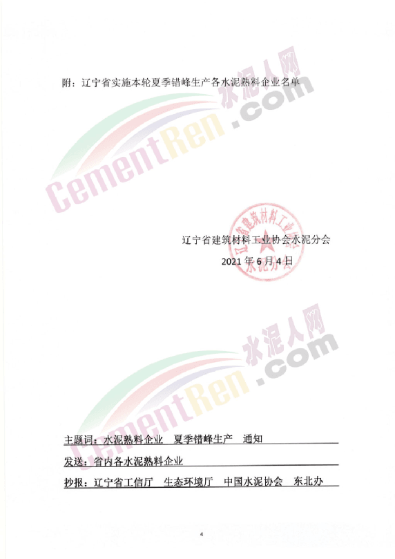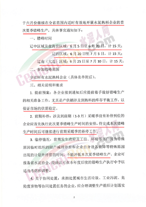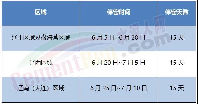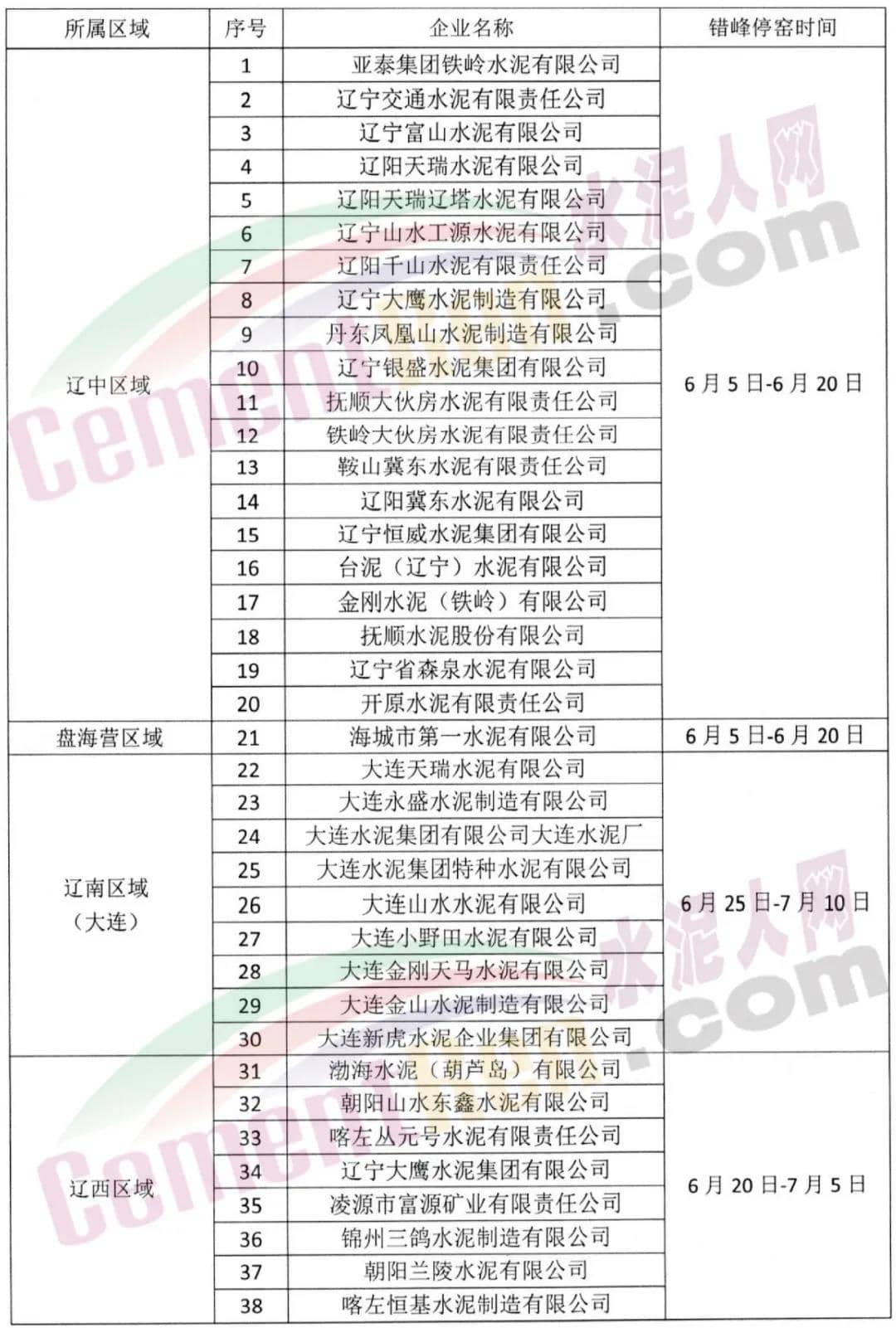 遼寧省熟料生產(chǎn)線首次夏季錯峰時間表