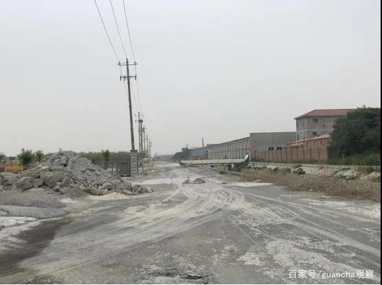 作為混凝土的企業——同合公司,并未樹立良好的企業形象,而是在生產當中把產生的大量堿性水泥固廢通過廠區后門出入,傾倒在未進行任何環保措施的路邊上,肆意污染。