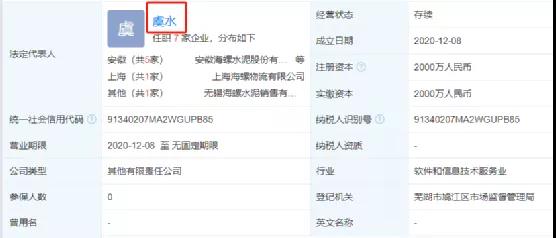 公開消息顯示,安徽?;酃溈萍加邢薰緸榘不蘸B菟喙煞萦邢薰究毓善髽I,法定代表人為海螺水泥總經理助理、董秘虞水。